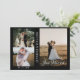 Le design comporte 3 collages de photos sur le devant avec le texte « Just Married » en calligraphie blanche et les noms des jeunes mariés.