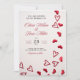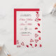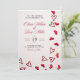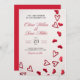 Faire-part blancs avec des cœurs rouges disposés de manière élégante et géométrique, design simple et élégant pour les amoureux des cœurs romantiques, et une ligne rouge et noire pour une apparence plus cohérente. Profitez de faire-part de mariage attrayants et commandez maintenant