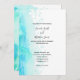 Faire-part de mariage avec design aquarelle de plage moderne par © Cathy Thompson. Ce magnifique design aquarelle est parfait pour tout mariage de plage ou de destination. De belles couleurs de bleu et de vert sur un fond blanc.