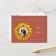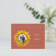 Faire-part de mariage élégant "à conserver" représentant un tournesol or jaune avec votre photo à l'intérieur, les noms des mariés, la date et le site web sur un fond en terre cuite. ++++ Facile à personnaliser des deux côtés ! ++++++++++ Convient pour un mariage champêtre moderne, rustique, estival ou automnal en extérieur, dans un jardin, une grange ou une ferme. ++++++ Veuillez noter que les couleurs sont changeables. Si vous avez besoin de personnaliser la couleur du texte et/ou du fond, veuillez contacter le concepteur via le bouton MESSAGE ci-dessous.