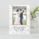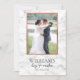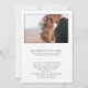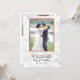 Une annonce de mariage en fuite moderne et une invitation à la réception. Un design à texture de marbre blanc affiche votre photo de mariage verticale aux bords en faux cuivre sur le devant, suivie de votre nom de famille, de vos prénoms en typographie manuscrite et de la date de votre mariage. Ce design met en valeur 2 de vos photos de mariage préférées, la seconde étant au dos, avec les détails de l'annonce de mariage et de l'invitation à la réception. Ce design est facilement personnalisable avec ce modèle de design. Un design chic et sophistiqué pour la mariée élégante. Copyright Elegant Invites, tous droits réservés.