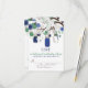 Illustrations fantaisistes de pots Mason bleus foncés suspendus à un arbre avec des ficelles en forme de cœur, deux tourtereaux et une variété de fleurs bleues et vertes. Ce faire-part de mariage est assorti à d'autres articles. Cette invitation avec pot Mason serait parfaite pour des mariages de printemps, d'hiver et en plein air.