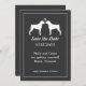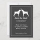Faire-part de mariage pour amateur de Boxer. Faire-part de mariage gris et blanc avec silhouettes de chiens Boxer.