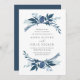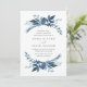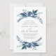 Notre faire-part de mariage Wild Azure entoure vos détails de jour de mariage avec une bordure ronde de feuillage d'aquarelle glacée dans les tons ciel, fleur de maïs et bleu marine. Un choix moderne mais organique pour les mariages d'hiver avec des éléments botaniques peints en bleu cool.