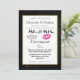 Une invitation de mariage de style moderne avec des lèvres roses et une illustration de moustache rétro. Sur un fond de tableau noir à l'intérieur d'un cadre doré. Personnalisez avec tous vos détails de mariage.