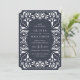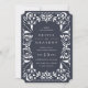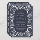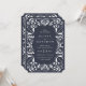 Élégante invitation à un mariage vintage dans riche décor bleu nuit orné qui évoque l'aspect du papier coupé dans un style picado papel. Sélectionnez la forme Billet pour compléter la forme unique des détails de style déco.