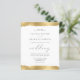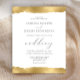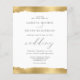 Cette élégante invitation de mariage présente un dessin de bord déchiré de faux feuille d'or aux bords supérieur et inférieur. Le mot "mariage" apparaît dans le script calligraphique. Customisez le texte gris charbon de bois avec les noms de la mariée et du marié et les détails du mariage. Le dessin de bord doré est répété à l'envers.