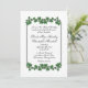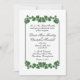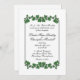Une belle invitation blanche avec des bordures de feuilles verts. Placez les prénoms du couple sur un côté avec toutes les informations et salutations du mariage de la mère et du père de la mariée. Veuillez vérifier trois fois tout votre texte.