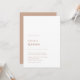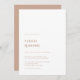 Cette faire-part de mariage chic et minimaliste est imprimée avec une police couleur bronze sur l'avant et l'invitation en arrière. Le dos contient les initiales du couple mariage. L'invitation a associé deux polices serif traditionnelles, créant un look élégant et moderne. Modifiez facilement le modèle à vos noms de mariée et de mariée et les détails du mariage. Faire-part de mariage Blanc Tan Chic. La couleur est hexadécimale #CDA994.