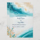 Célébrez votre amour côtier avec cette carte mariage exquise. Les vagues de l'océan et les coquillages colorés créent une ambiance de plage préppie, complétée par des oeuvres d'art génératives. Personnalisez avec votre monogramme et les détails pour une célébration vraiment remarquable. Créez une expérience inoubliable qui reflète votre lien unique avec un arrière-plan de tons bleus et de vibes de plage d'été.