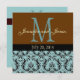 Faire-part de mariage de monogramme de damassé. Art et conception d'Elke Clarke©2010. Customisez avec vos noms, monogramme, date de mariage et votre texte d'invitation des deux côtés de cette belle invitation de mariage damassé. Vous pouvez également changer la couleur d'arrière - plan et n'oubliez pas d'essayer différents choix de papier, chacun qui l'ajoute doit posséder le "regard" en plus de la conception.