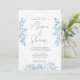 L'élégante faire-part de mariage boho dispose d'une bordure géométrique moderne et de feuilles d'eucalyptus bleus poussiéreux. Personnalisez avec vos détails mariages avec le modèle facile à éditer avec une police de script romantique et une police sans serif moderne. Découvrez les objets correspondants dans la collection "Blue" Eucalyptus.