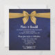 Image de fond bleu foncé époustouflante nouée avec un ruban doré. La papeterie est entièrement imprimée, pas de ruban réel. Personnalisez notre magnifique papeterie avec les détails de votre événement facilement et rapidement, il suffit d'appuyer sur le bouton de personnalisation. Le verso coordonné est inclus. Les articles assortis pour compléter votre collection d'événements sont disponibles dans notre boutique Zazzle !