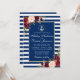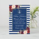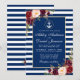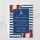 Invitation de mariage nautique bleu rayé aquarelle bordeaux marsala floral or