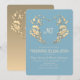 Cette élégante invitation de mariage baroque au monogramme bleu poussiéreux et or allie avec beauté le charme vintage à la sophistication moderne. Caractérisée par une luxueuse couronne florale dorée en forme de cœur, associée à un monogramme et à un script délicat, cette invitation crée une impression romantique et raffinée. Parfaite pour les mariages formels, ce design combine un fond bleu poussiéreux doux avec un dégradé doré au verso, assurant une présentation mémorable et élégante. Idéal pour les couples recherchant une invitation classique et intemporelle pour leur jour spécial.