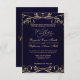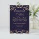 Faire-part de mariage avec bordure dorée sur arrière - plan bleu roi, donner une impression élégante et glamour pour le faire-part de mariage.