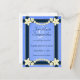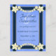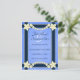 © Sunny Mars Designs. Cartes de Faire-Part de Mariage à l'or Rustique – Cette carte personnalisable de faire-part de mariage rustique élégant bleu avec un motif floral doré présente une illustration d'une bordure de ruban bleu foncé avec des fleurs blanches modernes sur un fond de papier parchemin vieux bleu clair.