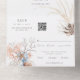 Cette invitation de mariage tout-en-un sur le thème de la plage aérée présente de belles illustrations d'un paysage de plage avec récif corallien, bois flotté et coquillages. La façon parfaite d'inviter les invités à une célébration côtière, cette invitation est sûre de donner le ton pour une fête amusante et décontractée. Le design aux couleurs neutres douces avec des touches de corail et de bleu capture l'essence d'une ambiance balnéaire, ce qui en fait un excellent choix pour les futurs mariés qui aiment tout ce qui est bohème et bord de mer. Ne manquez pas cette invitation unique et élégante !