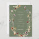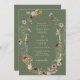 Faire-part de mariage Boho Vert. Cette invitation de mariage élégante et élégante présente de magnifiques fleurs sauvages d'aquarelle peints à la main, disposés comme une belle couronne parfaite pour le printemps, l'été ou les mariages de automne. Trouvez les objets correspondants dans la collection de Mariages Fleurs sauvages de saumons verts Sage.