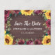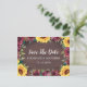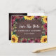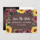 Ces cartes de save-the-date présentent un design rustique de tournesol et de roses de Bourgogne avec un fond en bois. Elles font partie d'une collection qui comprend une gamme complète de faire-part de mariage et de papeterie assortis. Veuillez visiter les pages de la collection dans notre magasin pour voir la gamme complète d'articles que vous pouvez personnaliser pour votre mariage.
