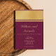 Faire-part de mariage avec un imprimé élégant qui satisfera les goûts de ceux qui aiment le style raffiné. Le contraste entre le jaune foncé et le bordeaux souligne les détails de ce design. Vous pouvez choisir la police, la taille et la couleur du texte selon vos souhaits.