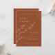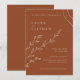 Cette élégante invitation de mariage minimaliste avec un design botanique moderne et des tons terracotta profonds complétera votre décoration de mariage ! Changez librement les polices, les couleurs et les détails pour le rendre vraiment vôtre ! Dans ma boutique WOWweds, j'ai des pièces assorties de la même collection.