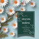 Annoncez votre journée spéciale avec un style intemporel en utilisant ce Faire-part de mariage botanique vert simple. Conçue pour les couples qui apprécient l'élégance et la simplicité, cette invitation présente des accents de coin feuillu blanc minimes sur un riche arrière - plan émeraude, jumelé à une typographie serif propre qui rayonne de grâce et de tradition. Avec un texte clair et bien organisé et un cadre classique à double ligne, cette invitation est idéale pour les événements formels et les cérémonies de jardin contemporain. Points forts du design : arrière - plan vert profond avec des illustrations botaniques blanches minimalistes dans chaque coin polices serif élégantes pour un look traditionnel, propre Disposition classique avec cadre à double ligne Toutes les informations mariages clés affichées avec clarté Idéal pour l'impression sur matte, lin ou carton recyclé Parfait Pour : mariage traditionnel ou minimaliste sur le thème de la verdure ou de la botanique Couples mariage qui préfèrent sous-élégance