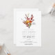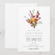 Faire-part de mariage avec bouquet floral et feuillage automnal aquarelle coloré élégant. La couleur de fond, ici blanche, peut être personnalisée. Design typographique moderne et chic.