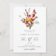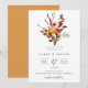 Faire-part de mariage avec bouquet floral et feuillage automnal aquarelle coloré élégant. La couleur de fond, ici un jaune moutarde atténué, peut être personnalisée. Typographie moderne et chic.