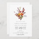 Faire-part de mariage avec feuillage automnal et bouquet floral aquarelle élégant et coloré. La couleur de fond, ici blanche, peut être personnalisée. Design typographique moderne et chic.