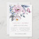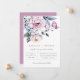 Belle composition florale aquarelle bleu poussiéreux et mauve, faire-part de mariage. Design de typographie gris et mauve moderne et chic. Le dos de la carte présente une couleur unie en mauve poussiéreux, qui peut être personnalisée.