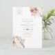 Cette invitation de mariage présente des feuilles de palmier aquarelles bohèmes et des fleurs de couleur terre légère avec une mise en page moderne élégante. Ajoutez facilement votre photo et votre site web de mariage au verso pour un touche personnelle. Cette invitation de mariage est l'ajout parfait à votre mariage bohème moderne sur la plage ou dans le désert.