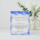Une faire-part de mariage moderne, élégante et minimaliste. Arrière - plan à l'aspect argent faux décoré de faux parties scintillant bleu royal, scintille. Personnalisez et ajoutez vos noms et les détails du mariage. Lettres de couleur noire.