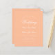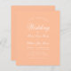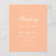 Une faire-part de mariage économique simple et minimaliste. Il n'a que du texte blanc sur arrière - plan pêche (une couleur moderne). Le mot Mariage et les noms sont écrits dans un élégant script calligraphique.