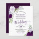 Ces invitations de mariage abordables et abordables sont le choix parfait pour la classe, le style et la beauté sur un budget. L'élégant design présente des roses d'aquarelle peints à la main dans des tons de violet poussiéreux, de prune et de violet, avec un bevy de feuilles d'eucalyptus et de verdure. La typographie présente une calligraphie script sophistiquée, et le dos est une couleur violet marbré profond. Merveilleuse façon d'invitation vos amis et votre famille pour partager votre joie dans votre journée spéciale sans casser la banque.
