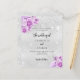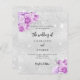 Un arrière - plan à l'aspect faux argenté avec des étincelles faux argentées et des fleurs roses et violettes. Personnalisez et ajoutez vos noms et détails. 1 feuille = 1 invite imprimé bord à bord.
