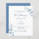 Un arrière - plan blanc, décoré de tiges d'eucalyptus bleues poussiéreuses, pousse. Personnalisez et et vos noms et les détails. Dos : arrière - plan bleu poussiéreux.