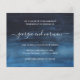 Faire-part de mariage économique moderne avec un design simple avec vos noms dans un script manuscrit avec des swashes avec vos détails de l'événement en blanc, sur un lavage bleu marine d'aquarelle foncé. La couleur bleu marine foncé rend cette invitation idéale pour un automne ou un mariage d'hiver. Ces invitations de mariage bon marché sont imprimées sur des feuilles de papier pour une option économique.