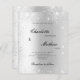 Une faire-part de mariage formelle moderne, élégante et minimaliste. Arrière - plan à l'aspect argent faux décoré de faux parties scintillant. Personnalisez et ajoutez vos noms et détails. Lettres de couleur noire. Les prénoms sont écrits avec un script de style moderne écrit à la main. 1 feuille = 1 invite imprimé bord à bord.