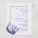 Un Faire-part de mariage BUDGET sur une feuille de papier avec un joli thème de bouquet Lavande et cadre doré. Le dos de l'invitation est une couleur réduite grande image de la fleur.