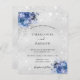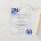 Arrière - plan métallique argent Faux décoré de fleurs bleues et de poussière de parties scintillant faux. Personnalisez et ajoutez vos noms et les détails du mariage. Lettres de couleur noire.