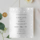Une faire-part de mariage moderne, minimaliste et formelle. Arrière - plan à l'aspect argent faux décoré de faux parties scintillant. Personnalisez et ajoutez vos noms et détails. Lettres de couleur noire. 1 feuille = 1 invite imprimé bord à bord.