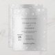 Une faire-part de mariage moderne, minimaliste et formelle. Arrière - plan à l'aspect argent faux décoré de faux parties scintillant. Personnalisez et ajoutez vos noms et détails. Lettres de couleur noire. 1 feuille = 1 invite imprimé bord à bord.