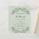 Un arrière - plan vert sage décoré de fleurs de lavande et de verdure d'eucalyptus. Personnalisez et vos noms et détails. 1 feuille = 1 invite imprimé bord à bord.