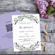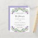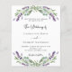 Un arrière - plan blanc décoré de fleurs de lavande et de verdure d'eucalyptus. Personnalisez et vos noms et détails. Retour : ajoutez l'url de votre site Web mariage au code QR pour plus de détails et/ou RSVP. 1 feuille = 1 invitation imprimé bord à bord.