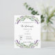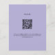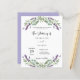 Un arrière - plan blanc décoré de fleurs de lavande et de verdure d'eucalyptus. Personnalisez et vos noms et détails. Retour : lavande, arrière - plan violet. Ajoutez l'URL de votre site Web mariage au code QR pour plus de détails et/ou RSVP. 1 feuille = 1 invitation imprimé bord à bord.