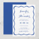 La carte Faire-part de mariage Blue Frame est un charmant mélange de fantaisie vintage et d'élégance moderne, parfait pour les couples à la recherche d'un faire-part unique et mémorable pour leur journée spéciale. Cette invitation présente une magnifique palette de couleurs bleu roi, évoquant un sentiment de sophistication royale qui prépare le terrain à une célébration mariage vraiment mémorable. Au coeur de l'invitation se trouve un cadre à ruban dessiné à la main, qui sert de point central du design. Ce détail fantaisiste mais élégant ajoute une touche de romance et de lucidité à l'invitation, capturant la joie et l'excitation de l'occasion. La typographie utilisée dans toute l'invitation est soigneusement sélectionnée pour compléter l'esthétique globale. Une élégante typographie moderne est associée à un script tendance, créant un équilibre harmonieux entre les styles classique et contemporain. Cette combinaison de polices ajoute un intérêt visuel et une profondeur à la conception, tout en assurant que les détails mariages sont transmis clairement et magnifiquement. Des éléments subtils vintages et rétro sont intégrés au design, ajoutant un sentiment de nostalgie et de charme. Du cadre dessiné à la main au scénario fantaisiste, chaque détail de l'invitation dégage un charme intemporel à la fois élégant et unique. L'utilisation du bleu royal comme couleur principale renforce le sens de l'élégance royale de l'invitation, tout en ajoutant une touche moderne à l'esthétique globale. La teinte riche dégage un sentiment de luxe et de sophistication, ce qui en fait un choix idéal pour les couples qui veulent faire une déclaration avec leurs invitations de mariage. Cette carte de Faire-part de mariage Blue Frame conviendra parfaitement aux couples qui recherchent un mélange de charme vintage et de sophistication moderne. Son design unique, ses détails fantaisistes et sa typographie élégante en font un choix exceptionnel pour un mariage qui valorise la créativité, le style et le romantisme.