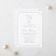 Faire-part de mariage classique bleu et blanc avec un cadre élégant à lignes fines et une illustration délicate d'un bol de fruits dessinée à la main. Typographie propre et intemporelle avec une mise en page raffinée—parfait pour les couples qui aiment l'élégance traditionnelle avec une touche vintage subtile. Personnalisez facilement tout le texte pour les détails de votre mariage, le lieu et l'heure.