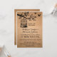 Conception de faire-part de mariage rustique et vintage. Cage à oiseaux suspendue à un arbre. Deux oiseaux d'amour volent vers la liberté. Avec fond de papier marron. Vous pouvez personnaliser le texte pour n'importe quelle occasion en automne. Baby shower, shower de mariage, fête de fiançailles, enterrement de vie de jeune fille, barbecue, anniversaire, anniversaire de mariage et bien plus encore. Obtenez une carte de réponse RSVP assortie, un timbre-poste et des autocollants dans ma boutique zazzle.