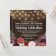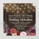 Faire-part de mariage Campagne Rustique Marsala Pivoine - comporte un fond en bois de grange rustique avec des guirlandes lumineuses. La partie inférieure présente diverses pivoines élégantes peintes à l'aquarelle, des roses et des éléments floraux dans des nuances de gris, rose, bordeaux, vin et Marsala. REMARQUE : ceci est prédimensionné à 13,3 cm sur 13,3 cm. Un format prédimensionné 13 x 18 cm et un format prédimensionné 11,4 x 17,1 cm sont également disponibles. Voir la collection sur cette page pour cet article et pour voir les modèles de produits assortis complets pour votre événement.